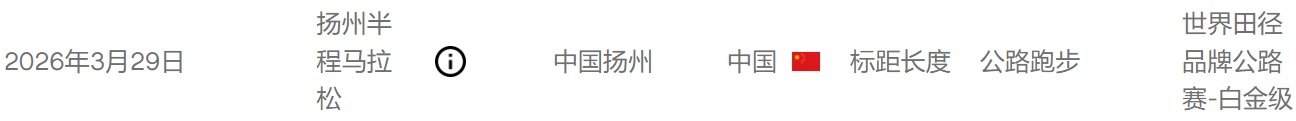 【25/12/01】据世界田联官网更新显示,2026扬州半程马拉松正式升级为世界田联白金标马拉松赛事,这也是国内第二场白金标半马赛事。